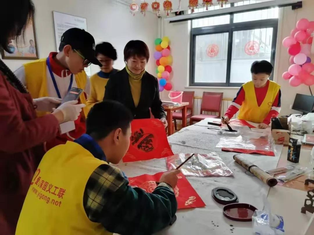1月18日上午,华方养老的老朋友“爱心家园”的志愿者们来到了西长安街街道华方养老照料中心与老人们一起写春联。