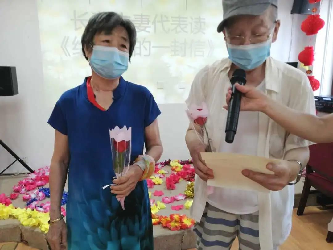 住在什刹海项目的段爷爷和曹奶奶两位老人,相濡以沫携手走过六十载,经历无数岁月和风雨。在七夕这一天,段爷爷为老伴亲笔写了一封最动人的情书。现场,老人在中心所有人的见证下,动情地为老伴朗诵情书,向老伴深情表白:“从翩翩少年到满头白发的老头,你对我仍是不离不弃,依然相守。"段爷爷的一句我爱你老伴,让曹奶奶热泪盈眶,两人深情相视,二老深情手挽手,笑容好甜。