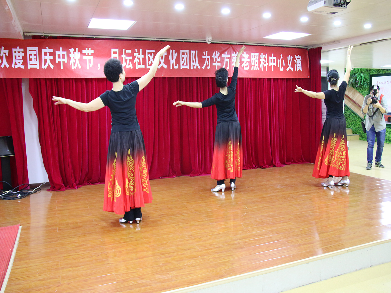 月坛街道华方养老照料中心执行主任杜巧玲参加了活动。节目最后表演人员与养老照料中心的老人们一起合影留念。