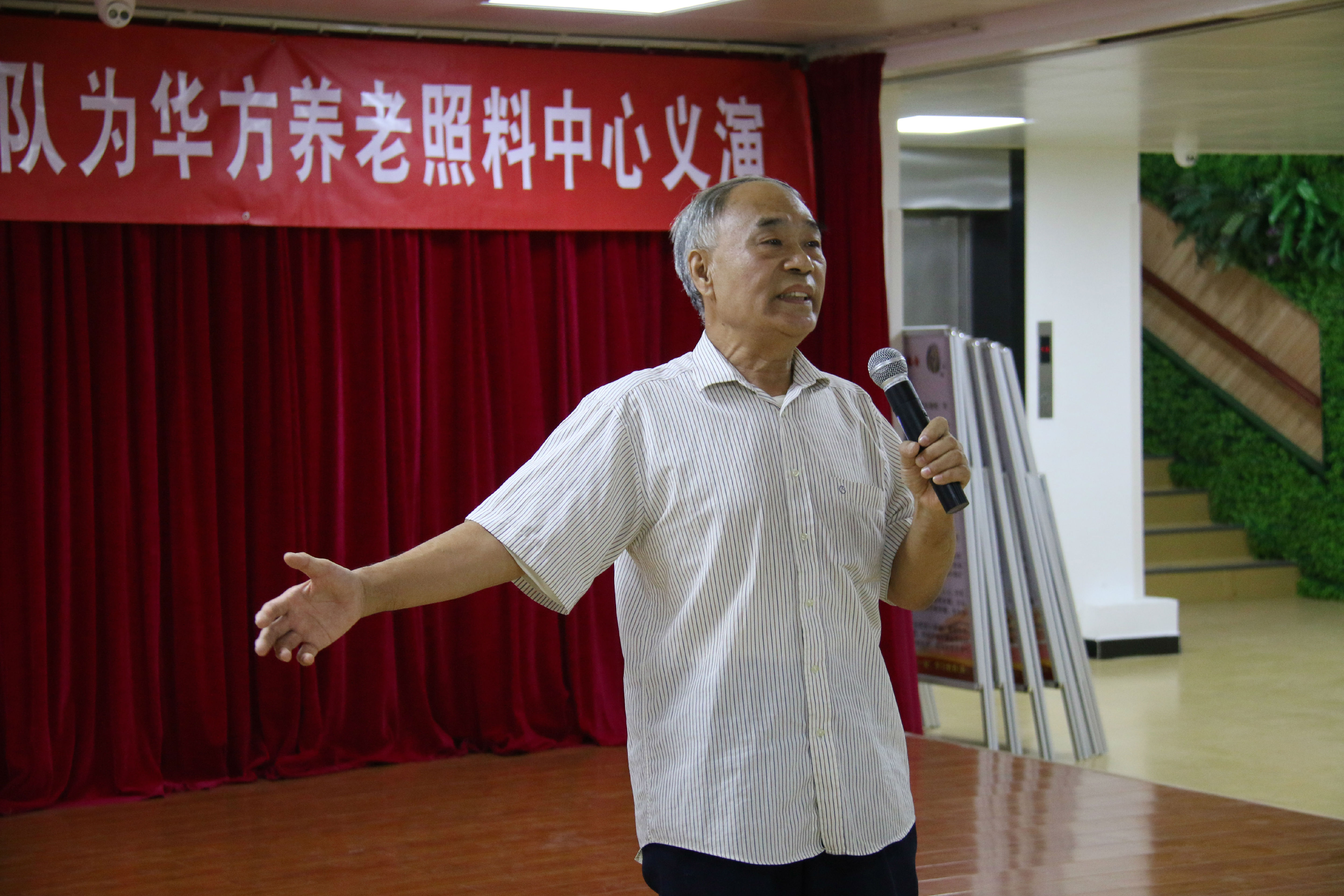 演出开始时,月坛社区冯琳书记和月坛街道华方养老照料中心主任助理刘宾分别致辞,为观看演出的老人们送上了节日的祝福。