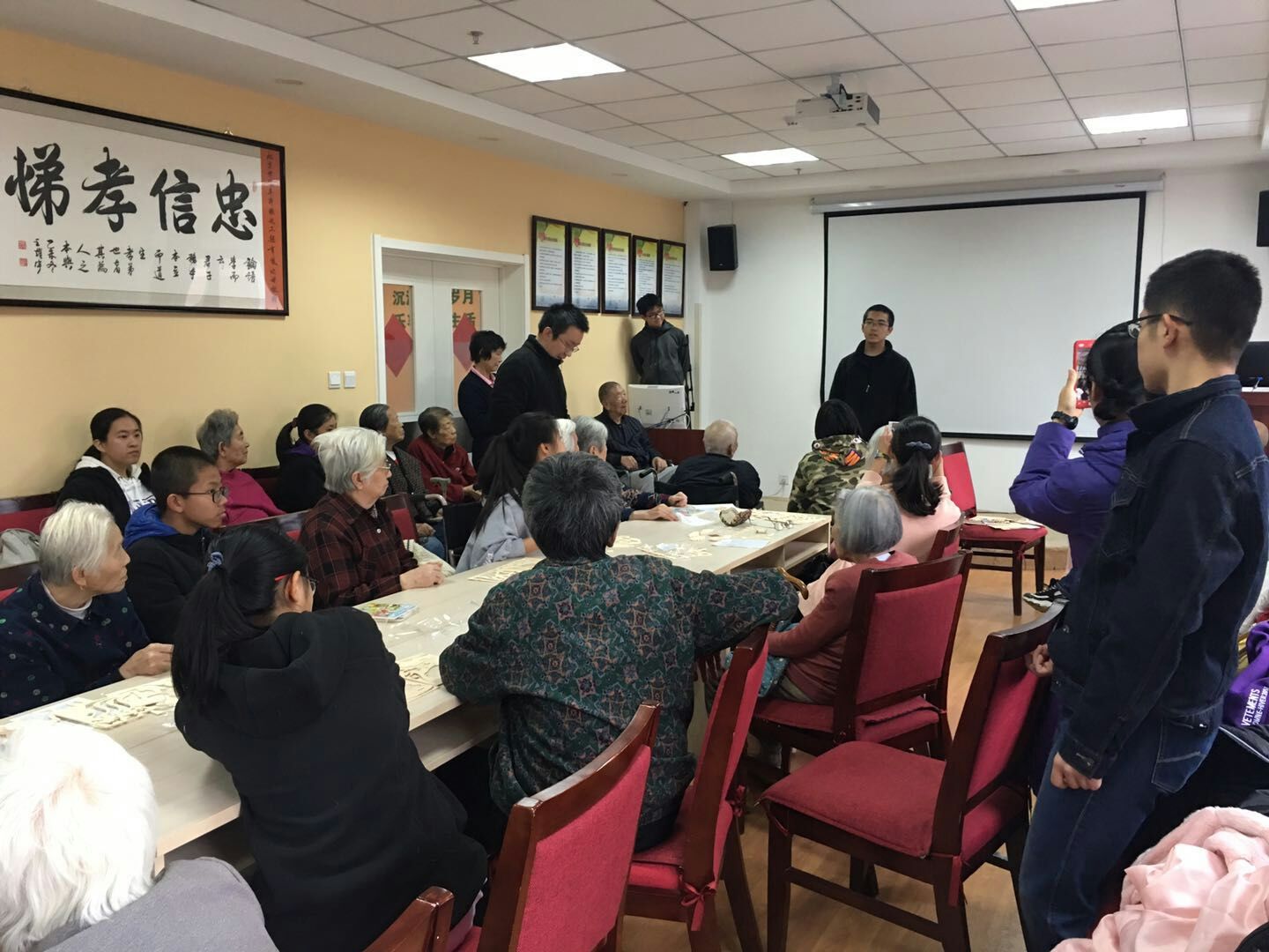 11月19日,北京三十五中的同学在老师的带领下,走进了什刹海街道华方养老照料中心,探望这里的爷爷奶奶们。