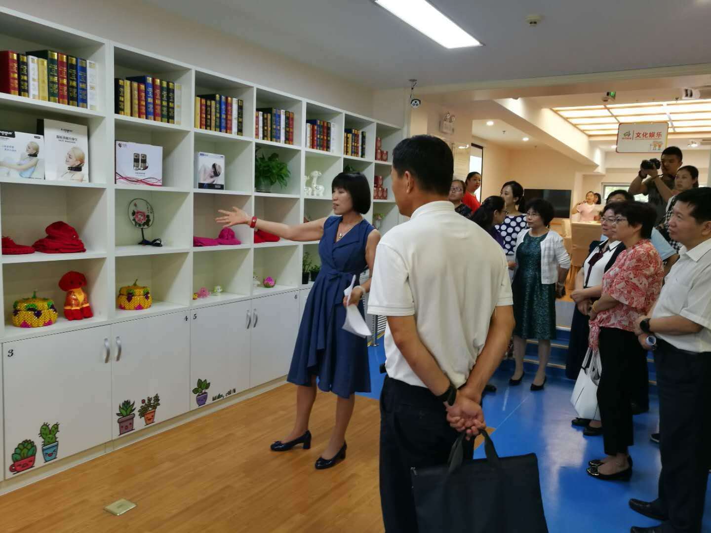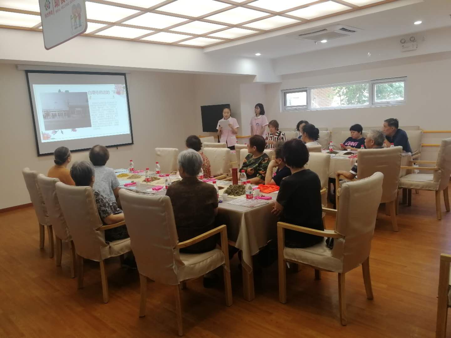 刘总首先向到场的各位领导详细介绍了华方养老公司的整体运营情况、社区驿站老人基本情况、养老驿站的六大功能和服务特色。