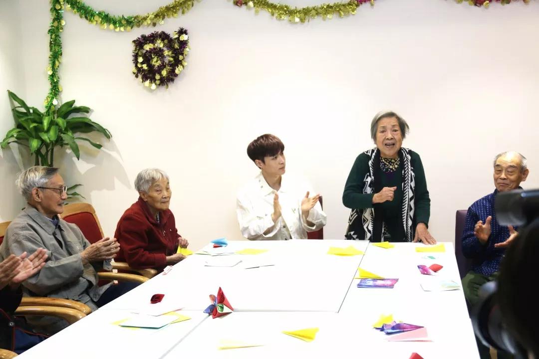 张艺兴和老人们一一打招呼,陪着老人一起做手指操,耐心的教爷爷奶奶们做手工。张艺兴把折好的六瓣花送给爷爷奶奶,还和爷爷奶奶们一起放飞折好的纸飞机,一同许下了新年愿望,并给老人们送上了新年的祝福。