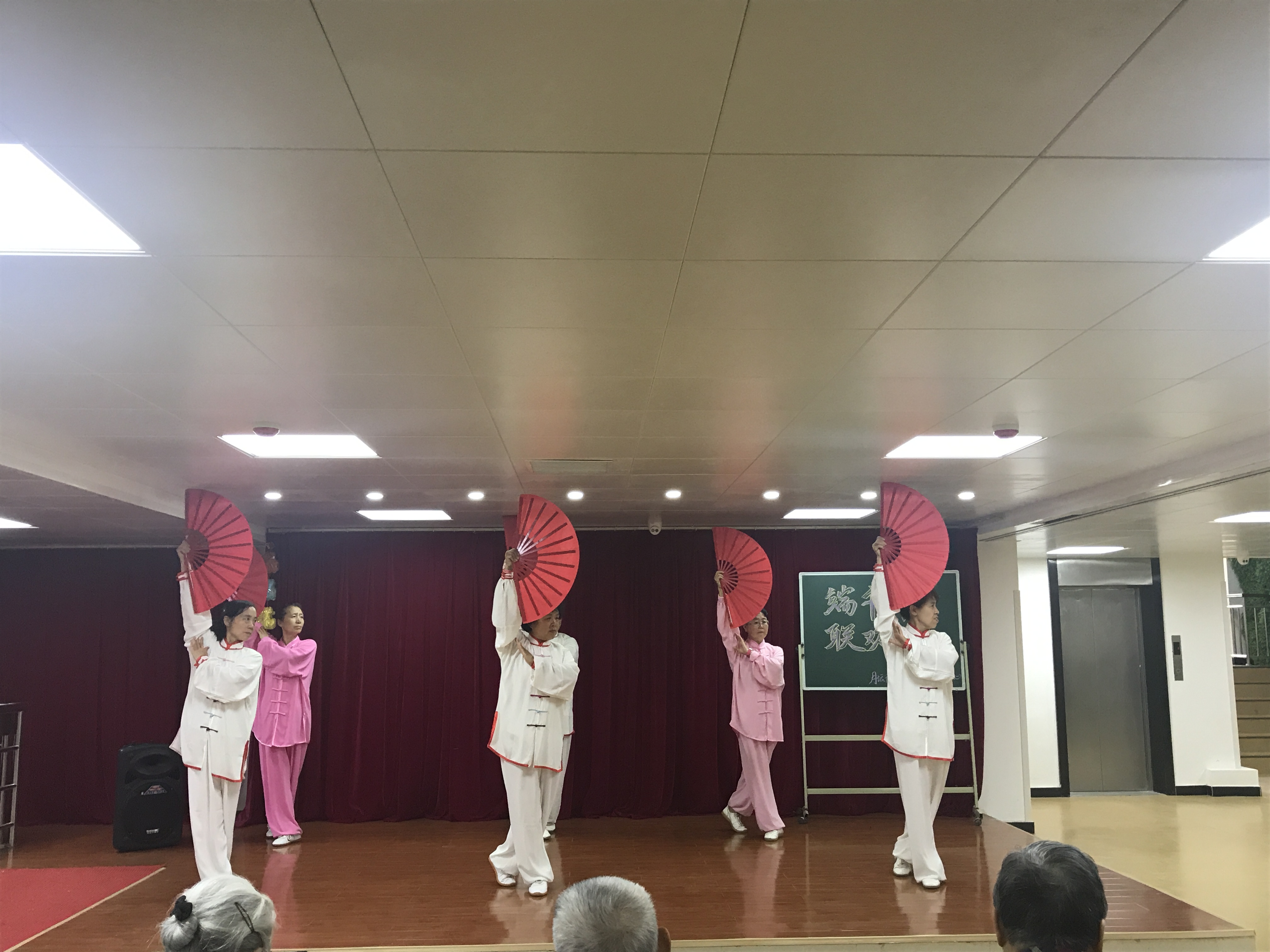 社区太极队的阿姨们给老人们带来了精彩的太极扇表演。太极队的阿姨们神采奕奕,一招一式充满了精、气、神,爷爷奶奶们看的更是津津有味。