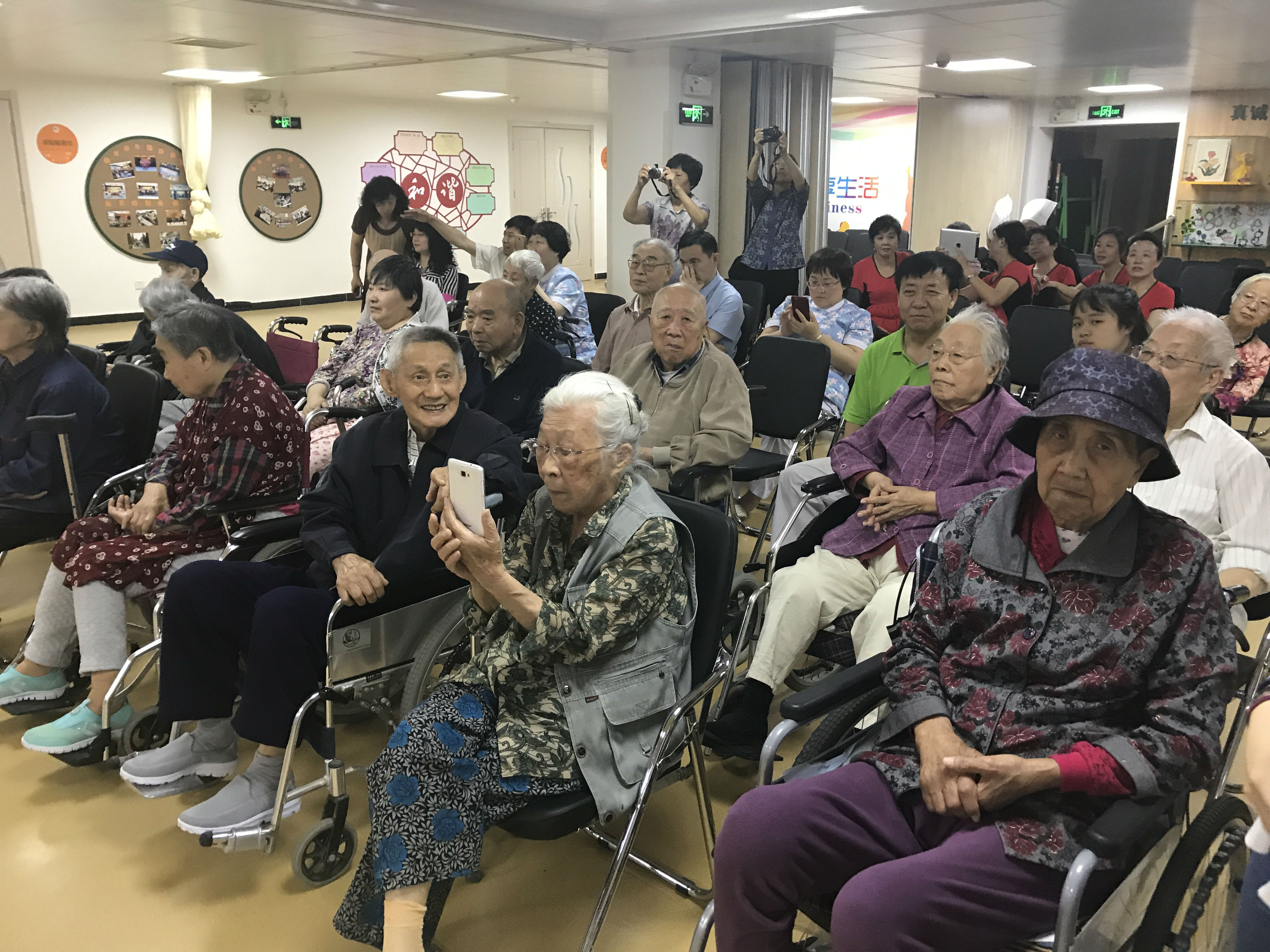 活动接近尾声的时候与我们老人朝夕相处的护理员也为我们的老人送来好听的歌曲。护理员王文辉给爷爷奶奶们带来歌曲《夕阳红》,祝愿我们的老人像歌曲中唱的那样:最美不过夕阳红,温馨又从容!一首有年代感的歌曲引来爷爷奶奶们连连的掌声。